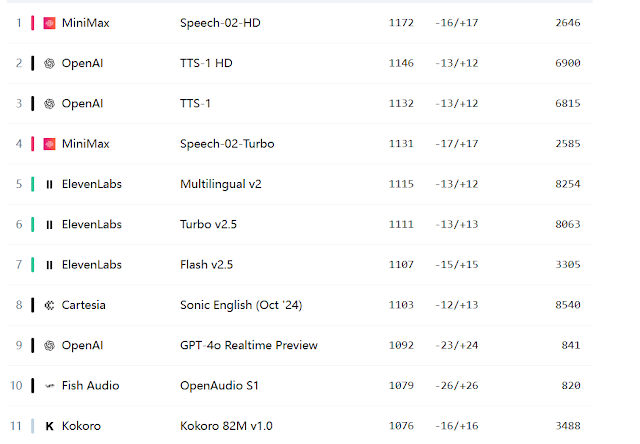 根据大模型榜单,将如下图所示,我们可以清晰看见有如下的大模型。同时,我废话不多说,直接告诉你为什么选择Fish Audio 以及 其他模型的问题。